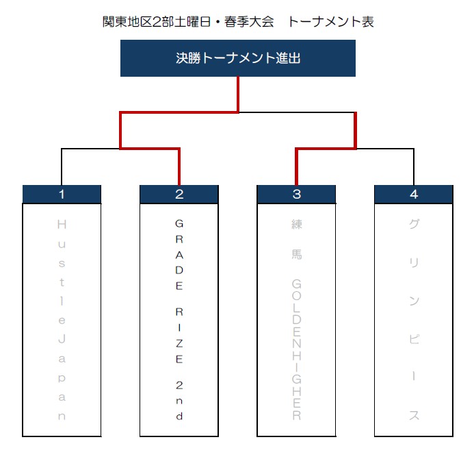 | ○ | 練馬GOLDENHIGHER | 不戦勝 | ― | 不戦負 | グリンピース | × |