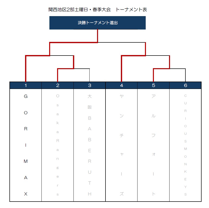 | ○ | Osaka Rangers | 2 | ― | 1 | 大阪BABERUTH | × |