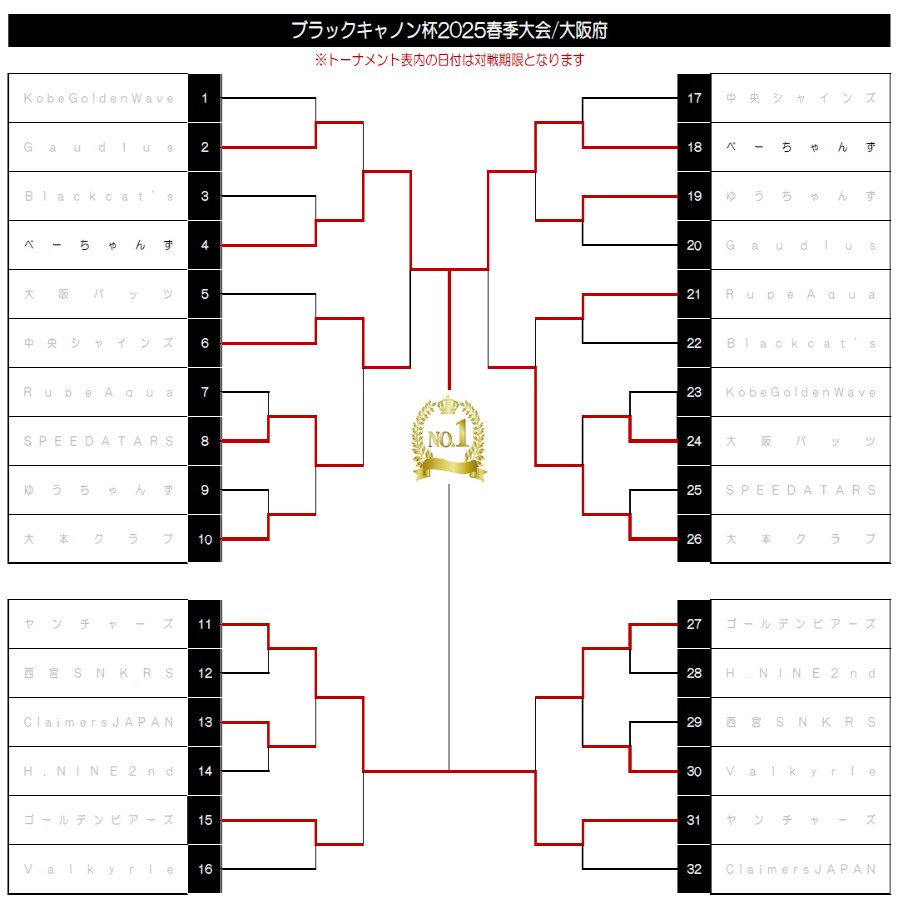 | ○ | べーちゃんず | 不戦勝 | ― | 不戦負 | ヤンチャーズ | × |