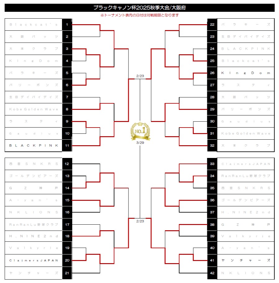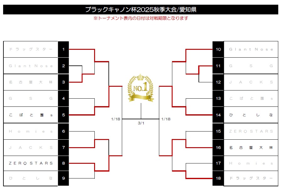 | ○ | Black cat's | 1 | ― | 0 | 大本クラブ | × |
