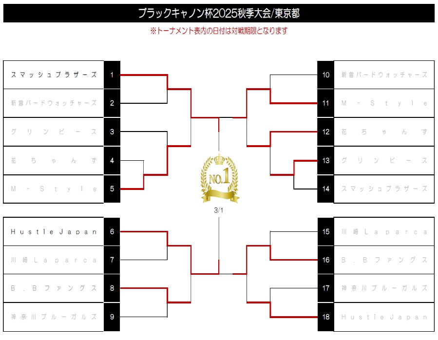 | ○ | Hustle Japan | 4 | ― | 2 | B.Bファングス | × |