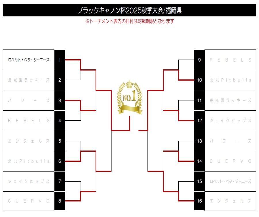 | ○ | 北九Pitbulls | 11 | ― | 0 | CUERVO | × |