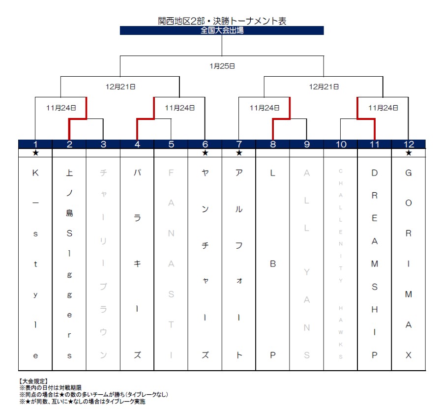 | × | パラキーズ | 0 | ― | 1 | ヤンチャーズ | ○ |